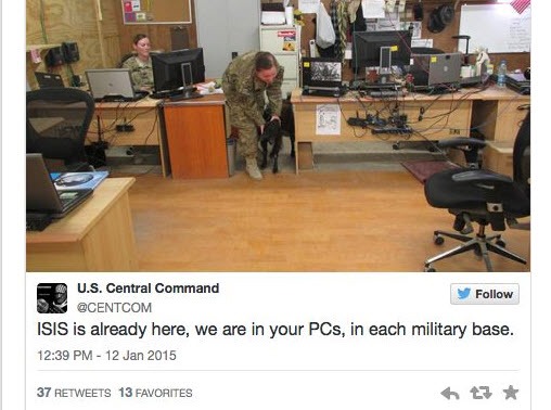 “O Estado Islâmico chegou. Estamos nos vossos computadores, em cada base militar”. Era esta a informação inicial colocada pelo grupo CyberCaliphate na conta de twitter do CENTCOM.