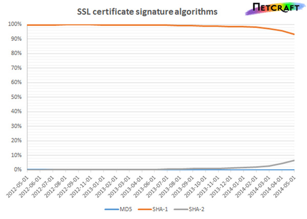 - 93% dos sites com certificado na Internet usam SHA-1, isto porque 20% a 30% dos utilizadores da Internet ainda usam o Windows XP (SP1 e SP2), ou telemóveis Windows antigos, que não permitem aceder a sites com SHA-2.