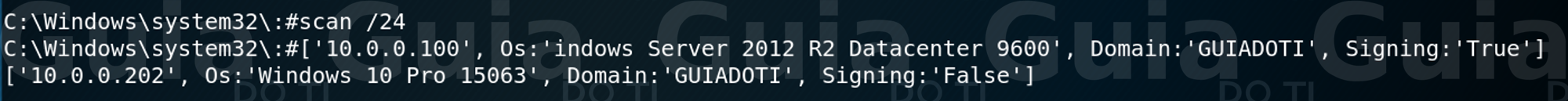 Para fazer o pivot precisamos analisar a rede em busca de hosts que não forçam a assinatura SMB, nos podemos fazer isso usando o utilitário RunFinger ou o comando scan do MultiRelay: