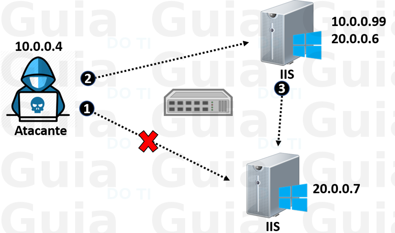 Pitov é a técnica exclusiva de usar um host para poder se “mover” dentro de uma rede. Basicamente, usando o primeiro host comprometido para ajudar no comprometimento de outros sistemas inacessíveis anteriormente. Nós usamos esse primeiro host comprometido para rotear o tráfego de uma rede normalmente não-roteável. Por Exemplo, imagine que o host A é atacante, o host B é nosso alvo já comprometido e o host C é o outro alvo que ainda não foi explorado. O x da questão é que o host C está em uma rede diferente do host A, porém o host B tem acesso as duas redes. Nesse cenário nos iremos usar o host B para rotear o tráfego do host A para o host C. Na imagem abaixo fica mais claro: